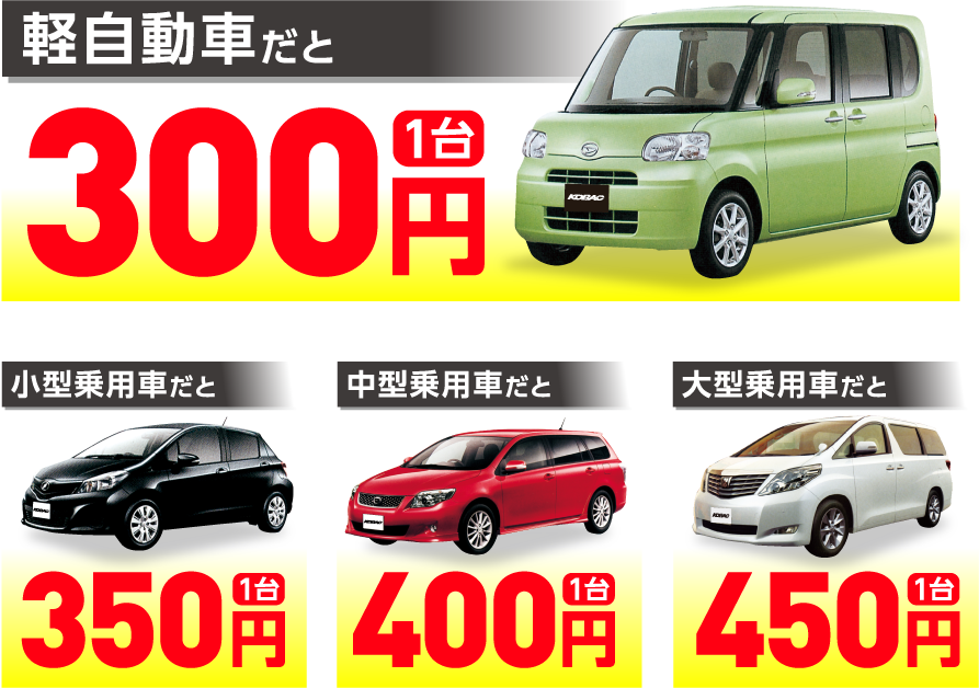 ※輸入車・営業車・不正改造車・ディーゼル車・貨物車・トラック・同業者の方は対象外となります。